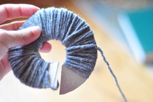 3. toma tu hilo y enróllelo alrededor del círculo... alrededor y alrededor y alrededor, hasta que esté lleno. (Más envolver, cuanto más gruesa es su cálida difusa)
