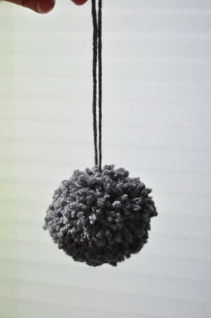 4. ahora, vas a coger sus tijeras y cortar el hilo entre los dos círculos de cartón. Se puede ver en mi foto cómo se hace. Asegúrese de mantener el hilo en su lugar con la otra mano.