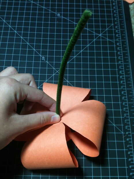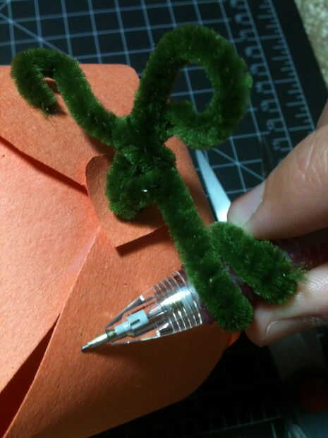 Forme un bucle con el limpiador de pipa y gírelo. Luego, con la longitud extra limpiador de pipa, enrollamiento de los limpiapipas en un lápiz. Empuje los giros de la herramienta y jale el extremo como un acordeón.