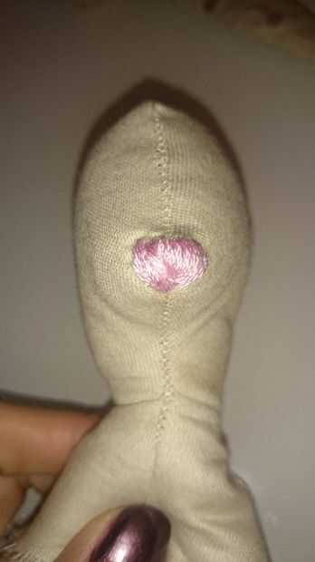 Para los ojos, sacar la aguja por donde quiera los ojos, nudo el hilo negro cerca de la tela y tire la aguja a través. Repita para el otro ojo.