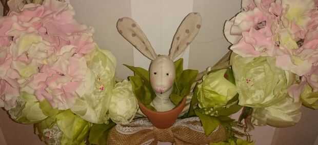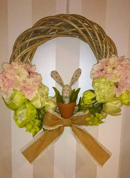 esto es una manera super fácil y super rápida para crear una guirnalda apuesta por debajo de 5 dólares,MATERIALES:Huevos plásticos (árbol del dólar)Pedazo de cartónCuchillo del exactoDecoración de conejito para el medio (árbol del dólar)Falso de flor
