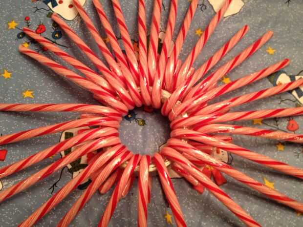 fácil, barato, fiesta candy caña titularElementos necesarios:1 velabastón de caramelo 4pegamento calienteLazos de regalo, artesanía flores, etc....Paso 1: Agregar pegamento a uno de los bastones de caramelo agregar rápidamente a la vela. Presione y m