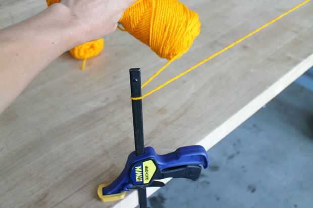 Nota: Después de tomar estas fotos, hice la guirnalda calabaza otra vez por el video y descubrió que funciona mejor si se mantiene la primera envoltura de hilo envuelve sobre todo posteriores. Se trata del pedazo de hilo que no cortan para la cadena de guirnalda y que se cuelgan las calabazas. Colgará vástago lado si esto está más cercano de la parte superior de cada pom pop. Vea el video en el paso 2 para ver lo que parece.