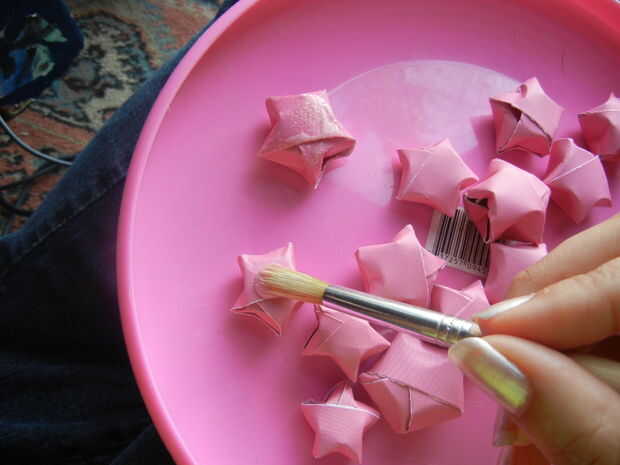 1. Cubra las estrellas como muchas o pocas capas de pintura de brillo que quieras.