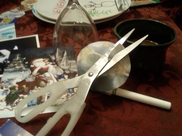 Bien, esta es la parte un poco difícil. Con un par de tijeras, corte una hendidura en forma de U en un lado de cada círculo y luego el otro. Las ranuras no satisfacen en el centro del círculo; sólo van a aproximadamente 1/3 de la forma de cada borde. Y son más formas de J invertida de U-formas. De hecho, son formas de clip de papel. Corte dos ranuras en la misma dirección, si se corta la primera ranura en una curva de U de derecha a izquierda (o viceversa), hacen al segundo corte del mismo modo. Resistir el impulso de hacer el segundo corte en la dirección opuesta de la primera. Usted verá por qué en unos tres segundos.