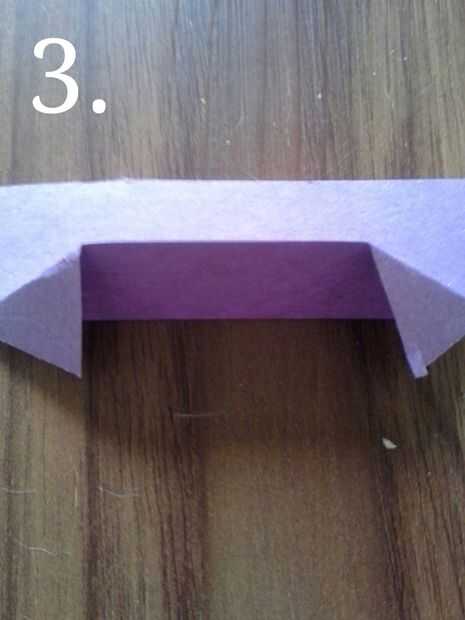 3) tomando las esquinas del papel doble en la parte inferior y repita al otro lado. (Foto 3 y Foto 4)