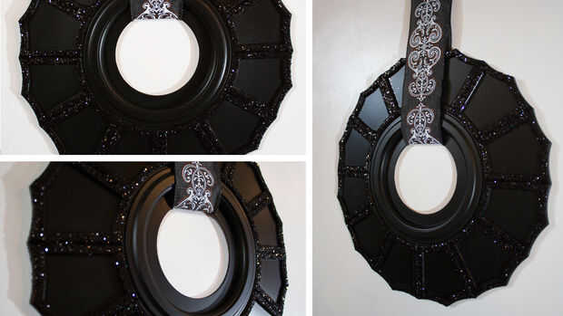 una elegante decoración de Halloween que es fácil de hacer y tendrán los vecinos pidiendo que compra!Se necesita:Corona de mimbreplumas negro 1 paquetePegamento calienteCuervo u otros adornos de Halloweenguirnalda de alambre con cristales comprados e