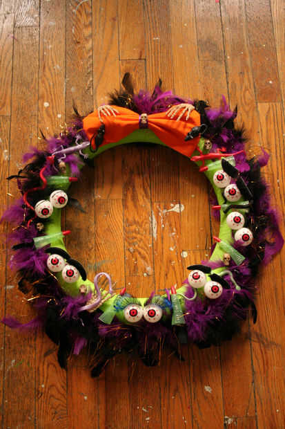 Ahora, eso es todo! Sólo tiene que colgar su corona en algún lugar de tu casa donde desea agregar cierta variedad monstruosa para Halloween!