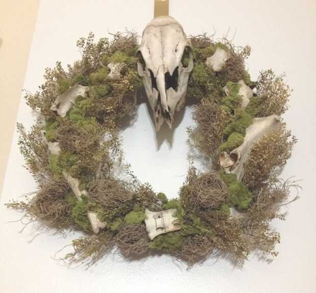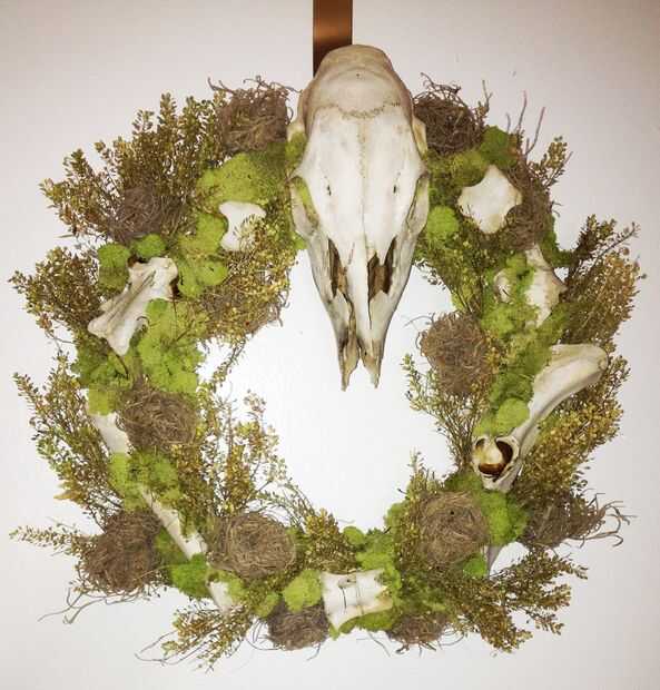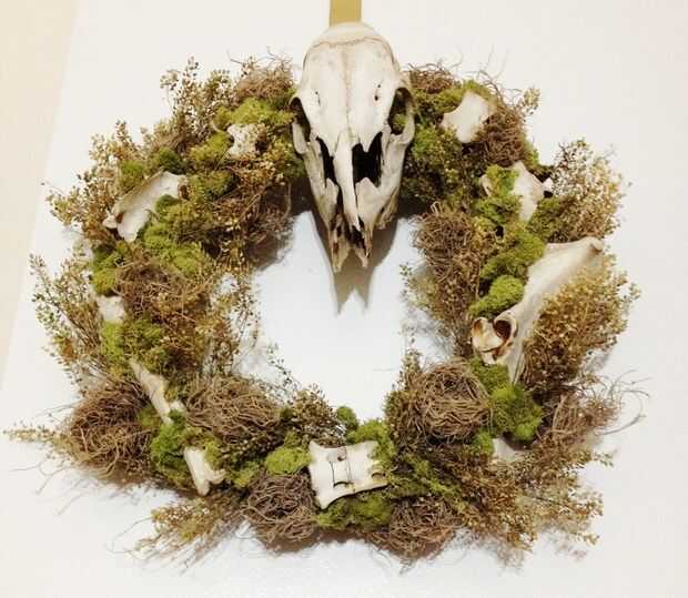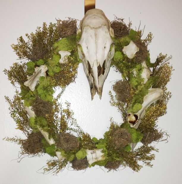 4) ahora agregar la hierba seca, utilizar para ocultar el alambre floral utilizado para asegurar los huesos lo mejor pueda.