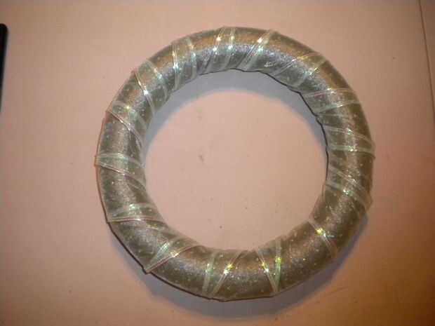 Ahora, tendrá que envolver su corona en cinta y use palillo alfileres para fijar la cinta. Esto te ayudará para los lugares donde se puede ver a través de los huevos. No sólo hay que ver la base de la corona, pero se hay cinta. Se puede utilizar cualquier color que usted elija. Usé una con cinta verde para cubrir mi corona.