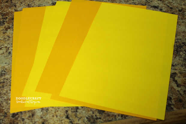 Luego corté 2 hojas de cada amarillo por la mitad.