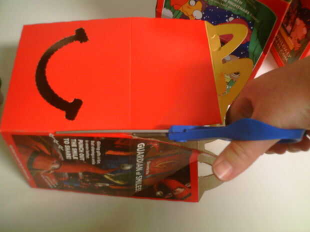 * Con unas tijeras, cortadas todo el lado rojo de la caja de Happy Meal