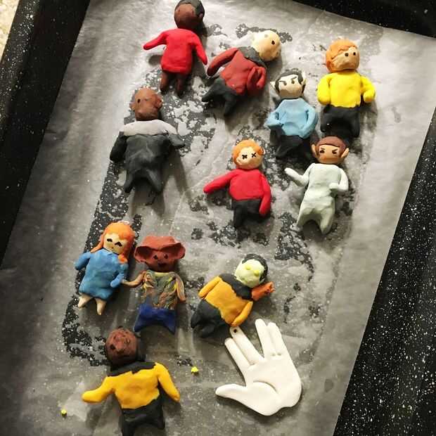 me encanta "Star Trek: Enterprise", así que he hecho a ganchillo la nave (dos veces, una para mí) y uno para mi mejor amigo y todas las personajes principales (más punto, el gato de The Next Generation). He hecho Porthos demasiado, pero él no es