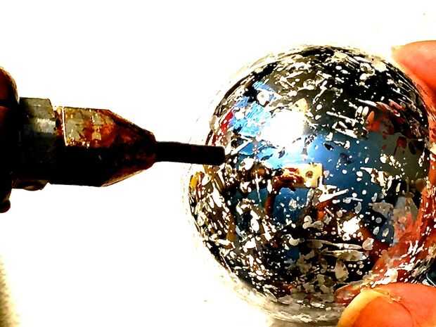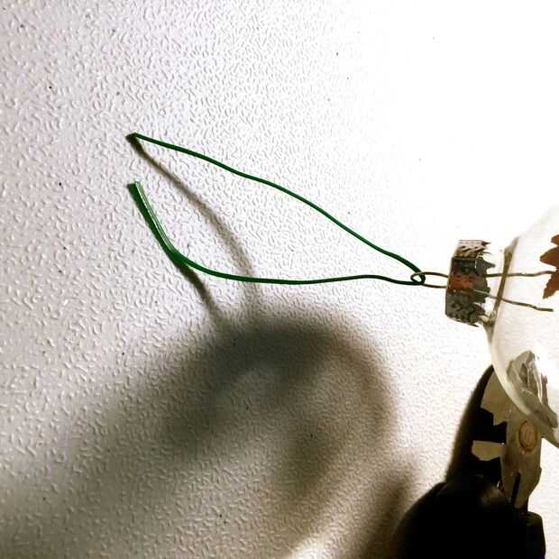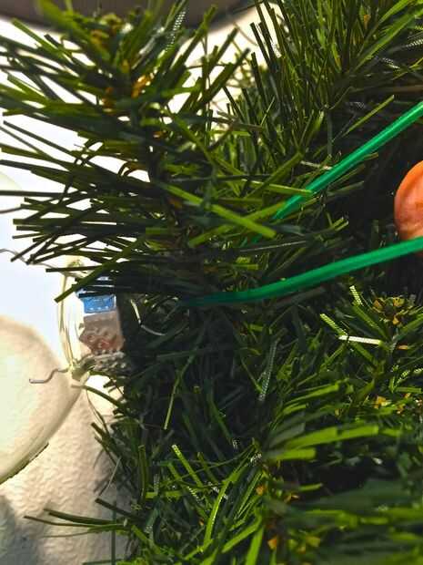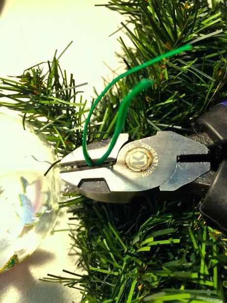 Igual como lo hice con las piñas, utilicé piezas de 8 pulgadas de alambre de floristería para unir y también de pegamento caliente. Cuando usando pegamento caliente, por favor, asegúrese de que cuando agregar el pegamento para vidrio adornos, asegúrese de que configurar el ajuste de la pistola de pegamento a baja temperatura, para evitar fisurar el vidrio.