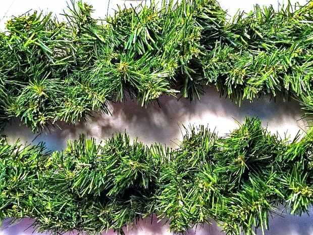 Para esta corona, usé 2 9 Foot Canadian Pine Garland By CelebrateIt™, es realista guirnalda con forma ligeramente ondulada.