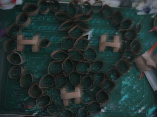 Forman la letra H por aplanar tres tubos y encolado de juntas. Coloque un tubo en el lado derecho de la H, por lo tanto, lee "Ho" hacen tres Attatch o uno en el lado izquierdo del árbol, uno a la derecha y uno debajo del árbol usando el pegamento.