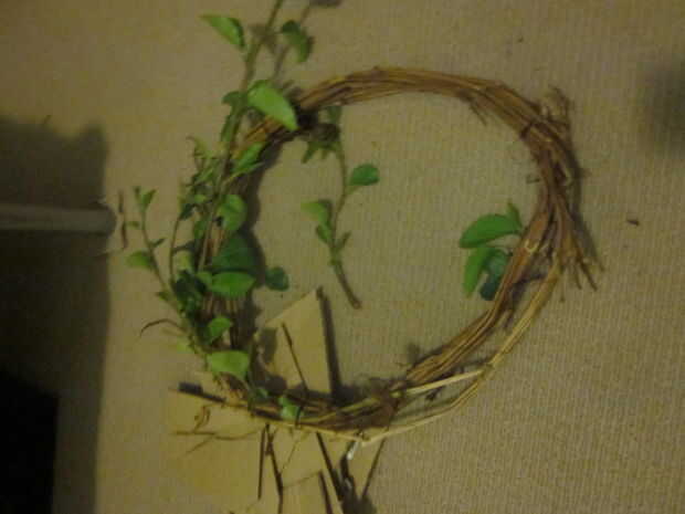 Después de leer el jardín y vecino de ramas y agujas de pino, compactarse suficientes para arrancar la corona. Empecé a romper palos y trazar en un círculo. Si usted se entrelazan los Stick juntos, gran. Si no, hilo o cuerda es útil para formar la base de la corona. Atascado en las agujas de pino verdes entre las ramas y me ató algunas con alguna cadena.