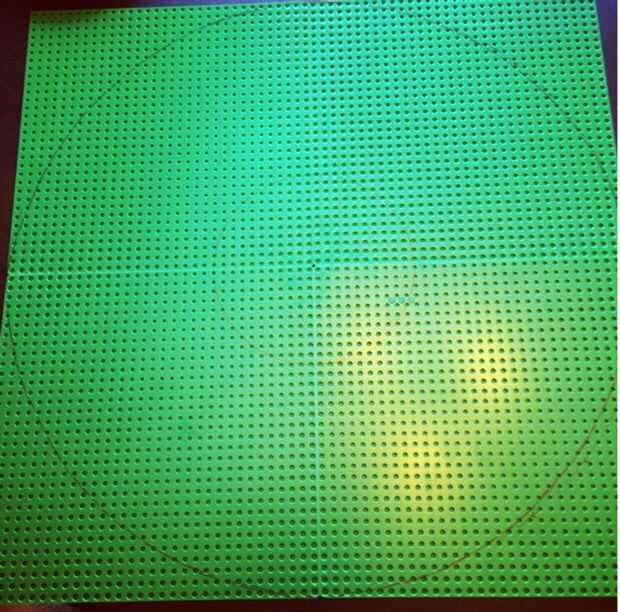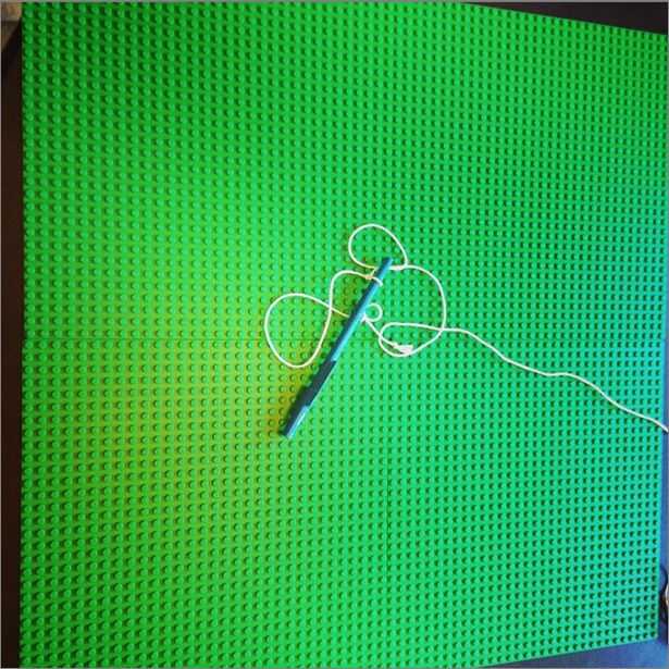 Dibuja un círculo grande. Ató una cuerda a una pluma y un mercado permanente y había sostenido para que el círculo estaría dentro de la estructura de las placas.