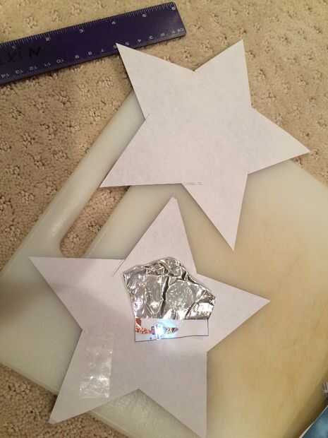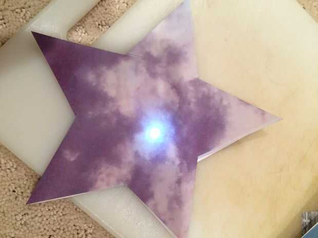 • A Conecte el circuito de LED papel que hiciste en la parte 1, toma alguna cinta de doble cara y pegarlos en su estrella de papel.