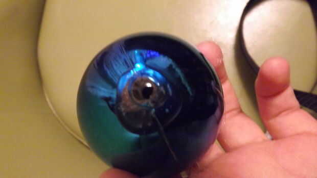 Primero quiere romper la parte superior que se utilizan para colgar un adorno. Después de eso, usando la pistola encoladora caliente Aplique pegamento en el área donde usted sólo interrumpió. Empezar a pegar los adornos en el centro de la corona en cualquier orden/patrón que desea.