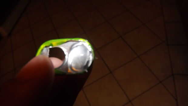Por último, utilizando la pistola encoladora caliente aplicar pegamento a la tapa de la lata, dejando la zona con el agujero Virgen. Esto se utilizará para colgar tu guirnalda.