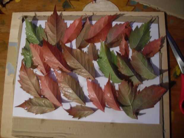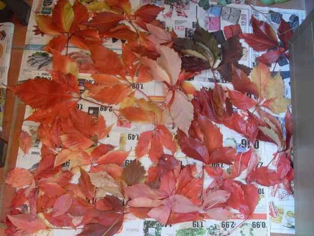 Lo primero que tienes que hacer es secar las hojas o se convertirá en un caos mohoso! No olvide que está en las hojas que se descomponen los microorganismos y humedad ayuda a este proceso. Así que, hice una herramienta de prensa improvisada en la cual coloca las hojas entre papeles (utilicé papel de la impresora pero periódicos funcionan bien) y luego todos los papeles entre dos cartulinas y dos piezas de madera contrachapada, puse las pinzas y dejar secar 5-6 días. Si sus hojas no se secan hasta luego, dejarlas algunos días más. Cuando esté seca, que usted puede rociar alguna laca para agregar algún brillo, además con la laca para el cabello las hojas no suelen fragmentar.
