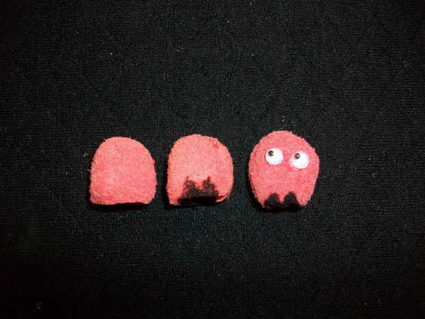 Inspirado en tutoriales de Youtube que dicen que usted puede pegar cosas de tela con pegamento caliente en lugar de coser.Hice estos para mi mejor amigo en el extranjero que sé que ama todas las cosas de Pac-Man.Paso 1: Se necesitatijerasfieltro (col