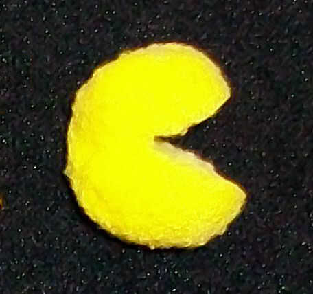 • Cortar la rebanada en pompones amarillo para la boca de pac-man