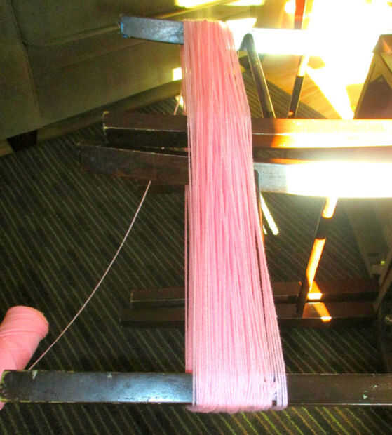 1. Empezar a envolver el hilo alrededor de 2 patas de silla o mesa. Esto puede ser como separados o juntos como usted quiere, utilicé 2 sillas al lado de que me diera más poms en un momento.