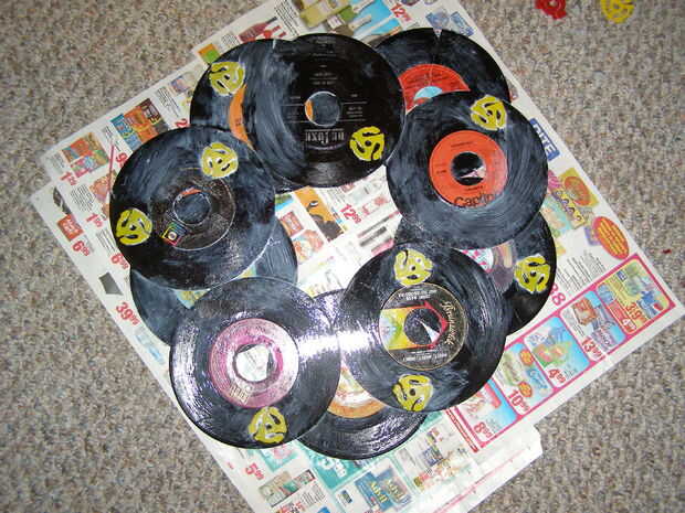 Aplicar decoraciones y sello. Usé 45 insertos algunos "color" y utiliza Mod Podge, un sellador de este arte, sobre la corona de toda para que pudiera ir fuera.