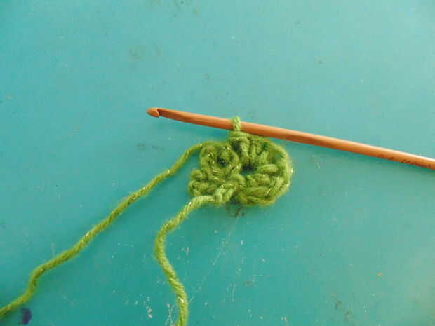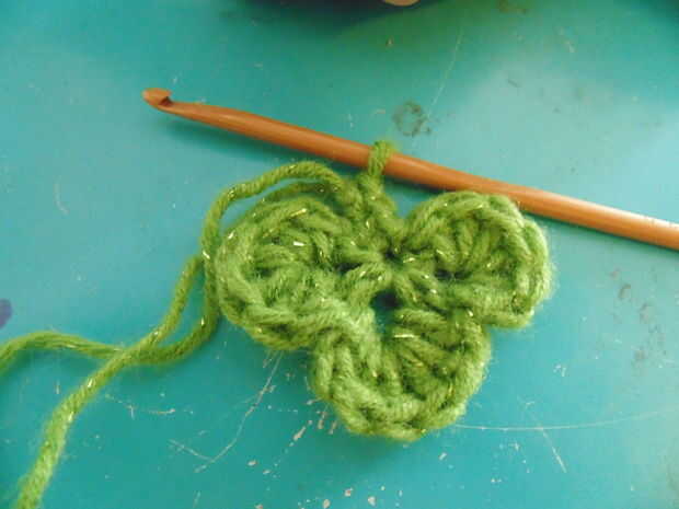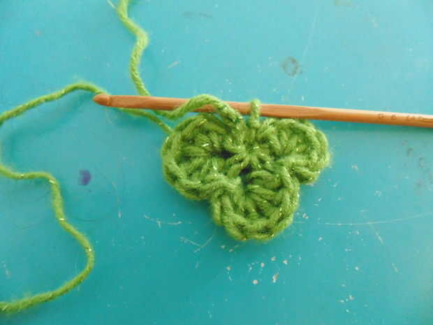 Para acabar la tercera hoja sl st en el mismo lugar lo hizo originalmente para las estructuras de la hoja.