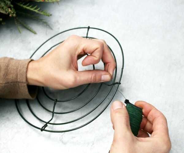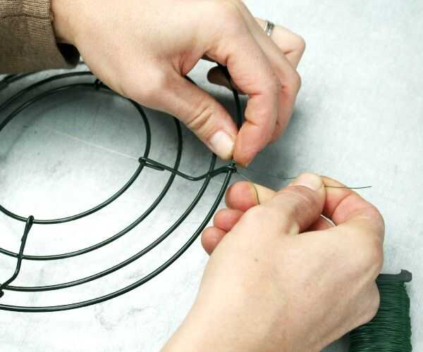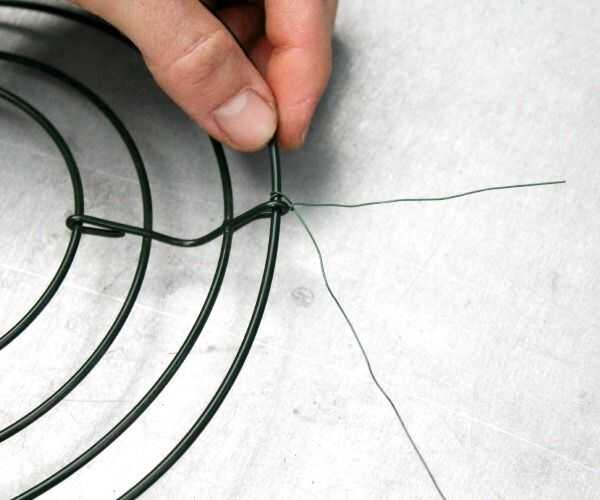 Para empezar, ate el alambre en el anillo exterior de uno de los travesaños cumple envolviendo el alambre alrededor de dos a tres veces y torcer como una ligadura.