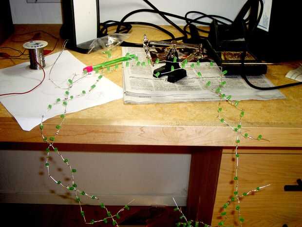 Dependiendo de cómo desea terminar la corona, puede dejar un par externo unjoined, para servir como un área abierta de la parte superior o inferior de la corona. Elegimos para ello en la parte inferior para dejar espacio para una estrella de LEDs rojos y luego se unió a los dos cables restantes con un lazo del alambre de conexión sólida.