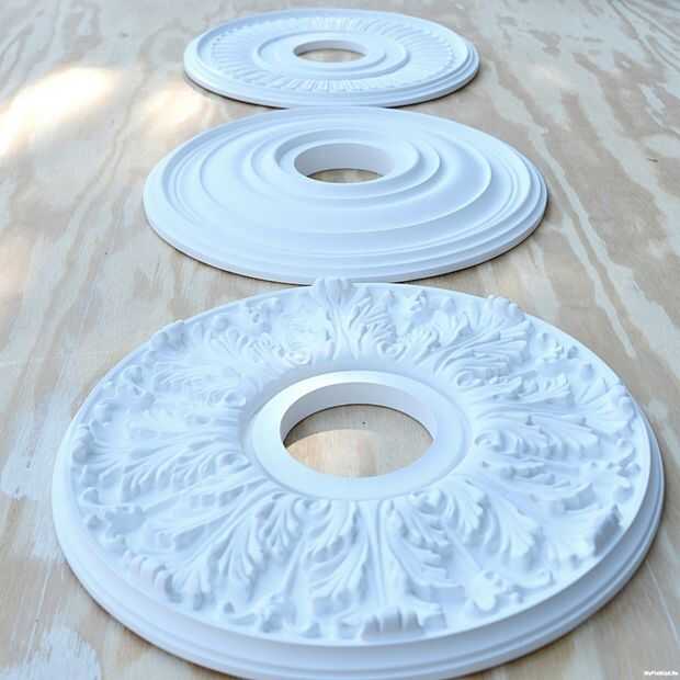 Elegí tres medallones de poliuretano Fypon: estilos de Jefferson, tradicional y Florentino. Una vez que elegí estos tres, tengo listo para la les pintura de aerosol.