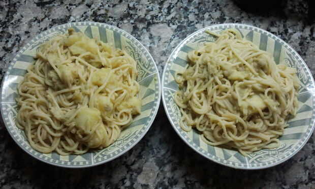 Tiempo: 25 minutosNecesidad de:Recipiente pequeño de Ricotta1 lb de Pasta-espaguetis1 bolsa pequeña de arvejas o guisantes frescos1 cucharada de aceite de oliva1/2 diente de ajo picadoQueso parmesanoPaso 1: Cook Colocar una olla grande de agua en la