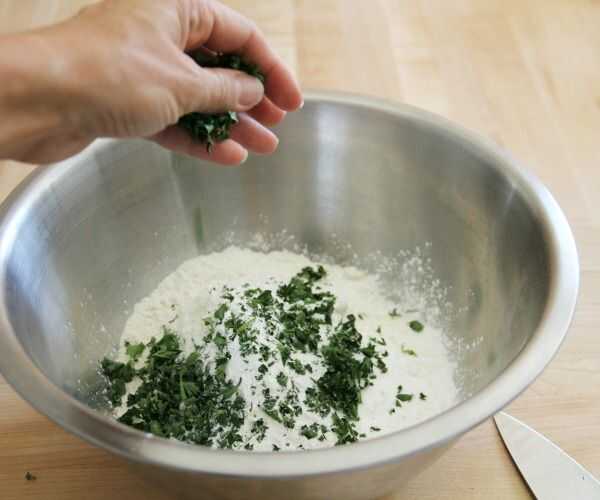 Picar 1/2 taza de perejil finamente y agregar a la mezcla seca.