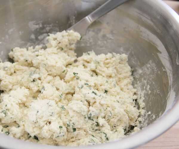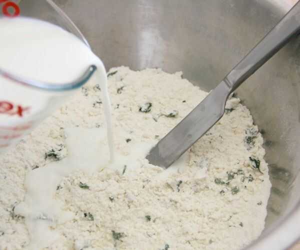 Con un cuchillo de metal de la mantequilla, mezclar suavemente la leche para formar una masa suave.