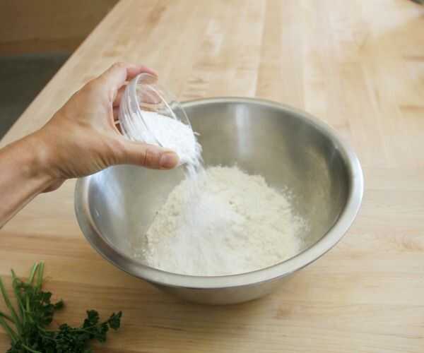 En un tazón mediano, mezcle la harina, polvo de hornear y la sal.