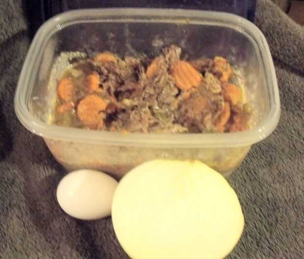 ingredientes:Carne de res molidaZanahoriasApioBlanco o Vadalia cebollaManzana roja deliciosaPatata (cualquier tipo hará)Extras:AlbahacaSalsa WorcestershireSal y pimientaPaso 1: Baller Tome la carne molida y lo embalamos en muchas bolas tamaño cuarto.