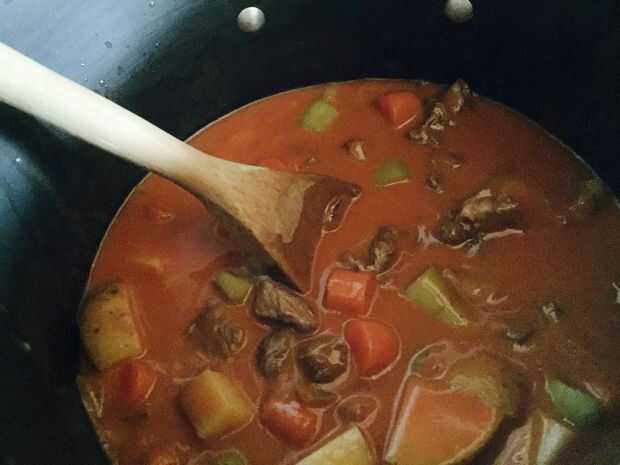 las cosas de leyenda...Guiso de carne de res de mamáEsta ha sido una comida favorita en nuestros viajes camping familiares para como recuerdo.Este guiso es un "trabajo de amor".   Llegar a mano de obra en la cocina haciendo... entonces todo el m