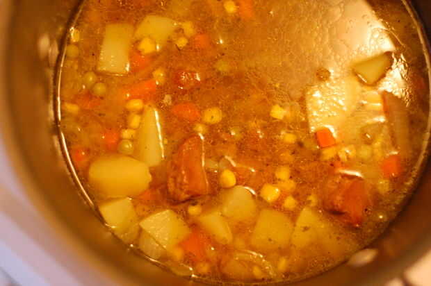Este guiso es sencillo, delicioso y muy versátil. También viene con un poco de historia. Después de la segunda guerra mundial, mis abuelos decidieron dejar su grito y trasladarse a la ciudad, para que mi abuelo podría trabajar en la nueva planta de e