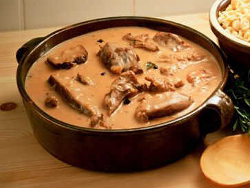 Guiso de carne y bolas de masa hervida es una de las comidas favoritas-comida de mi familia. Durante los años, yo he sustituido ocasionalmente pollo para carne y dos comidas de olla de uno son igualmente deliciosas. Haciendo de estos guisos de carne