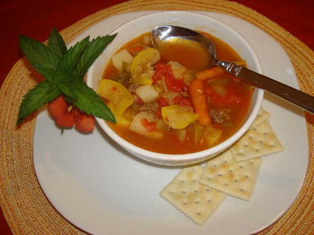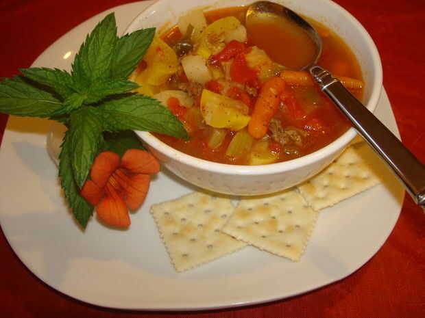me sirven este plato un par de veces a la semana.  No siempre saben igual porque uso verduras diferentes dependiendo de los que tengo que usar primero.  Es muy bueno con pan casero.  Mi hijo llamado esta noche y estaba emocionado que descubrió un nuevo sabor de salsa de Tabasco;  habanero.  Ahora deseaba que tenía algunos.  Agregaría una buena patada al guiso.