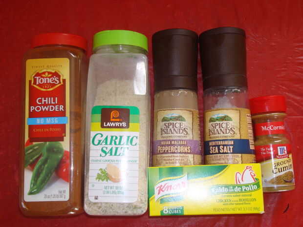 Sazone al gusto: ajo, sal, sal marina, polvo de Chile, maíz de pimiento molido y comino