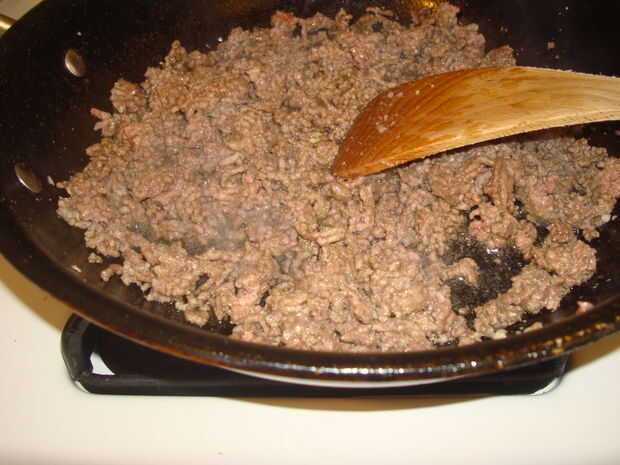 Hamburguesa de escurrir y añadir a la mezcla de guiso.