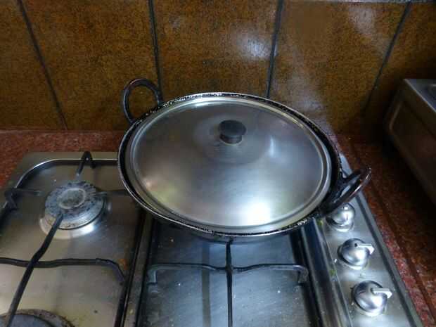 • Cubrir la cacerola y cocinar a fuego medio durante unos cinco minutos
