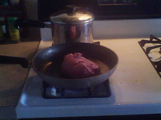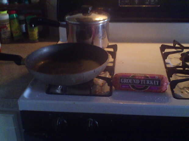 En una sartén grande, dorar carne de pavo. De esa manera puede controlar cuánto grasa entra en el guiso.