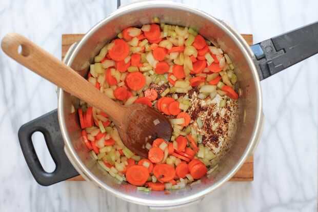 Una vez que las cebollas y el apio se empiezan a ablandar y obtener ligeramente translúcido, mover al siguiente paso!