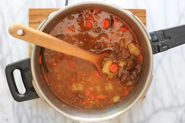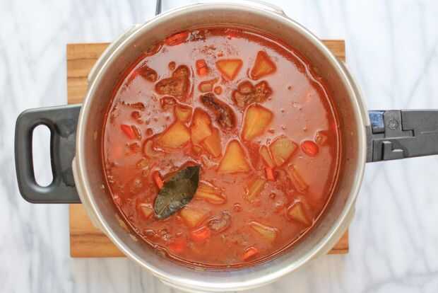 Si la carne no muy tierna, se puede cocinar por cinco minutos a presión.