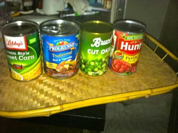 1 - 14 oz puede "De Bruce corte Okra" Si esto no está disponible, utilizar una lata de corte zanahorias o patatas.